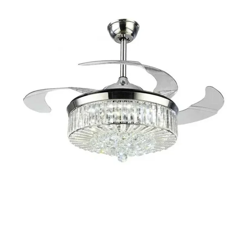Bedroom Living Room Crystal Ceiling Fan with Light Remote Control Modern Dimmable Fan Invisible Retractable Chandelier