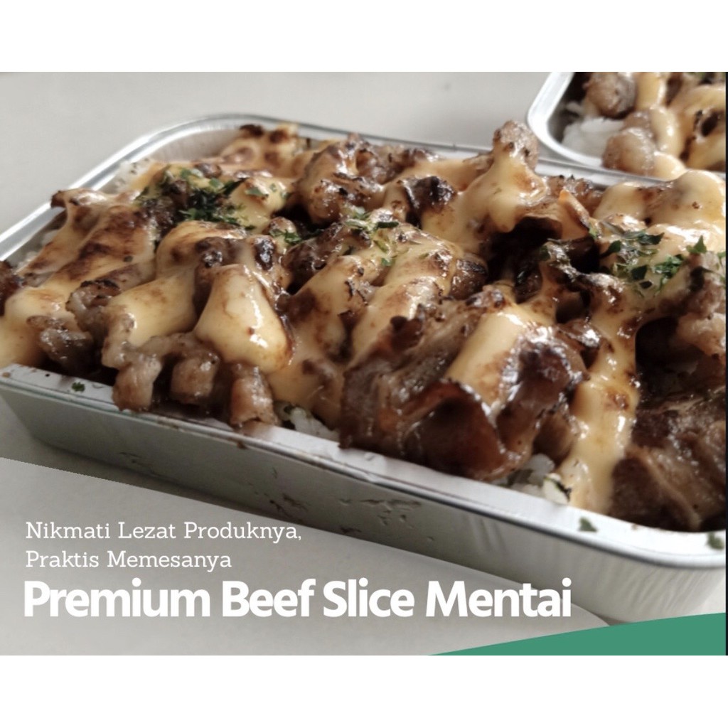Nasi putih diselimuti Beef Slice 90gr yang dibakar dengan pas dan nikmat, lalu diberi sentuhan saus mentai yang nikmat diatasnya, paduan sempurna untuk menemani makan siang atau makan malam mu