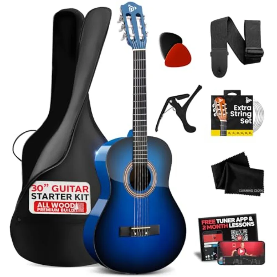 Beginner Acoustic Guitar Kit 1/4 Junior Size All Wood Build Nylon Stringed Instrument with Capo Strap Extra String Set Gig Bag
