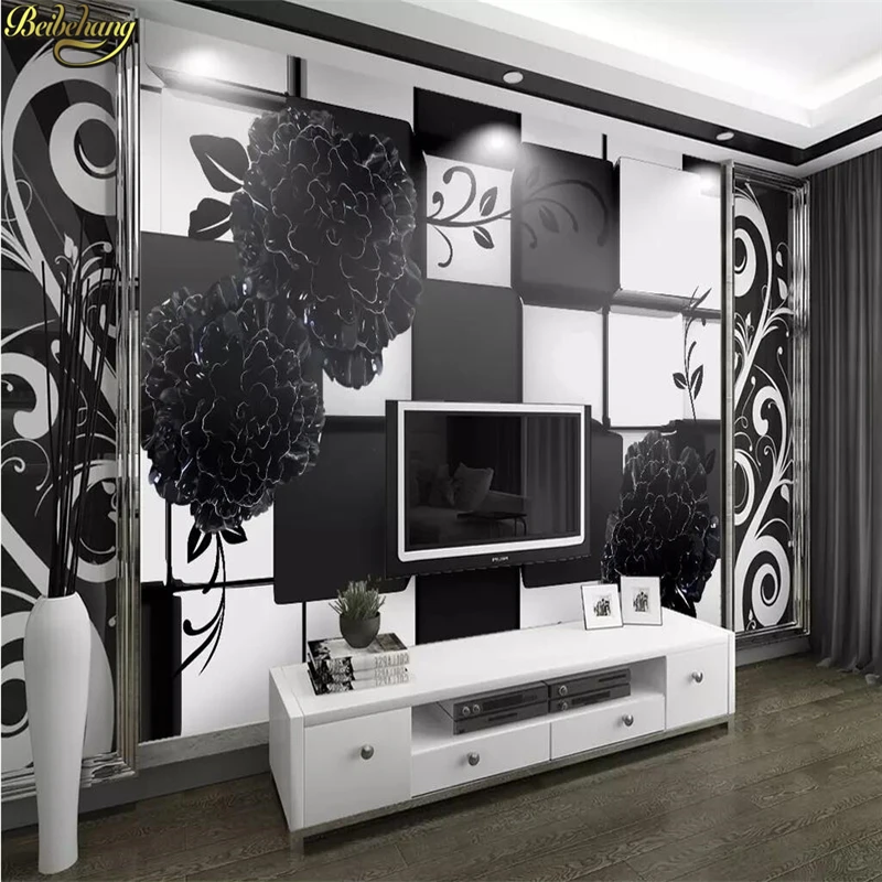 Beibehang пользовательские обои роспись черно-белые 3D тисненые цветы фон для телевизора обои домашний декор papel de parede