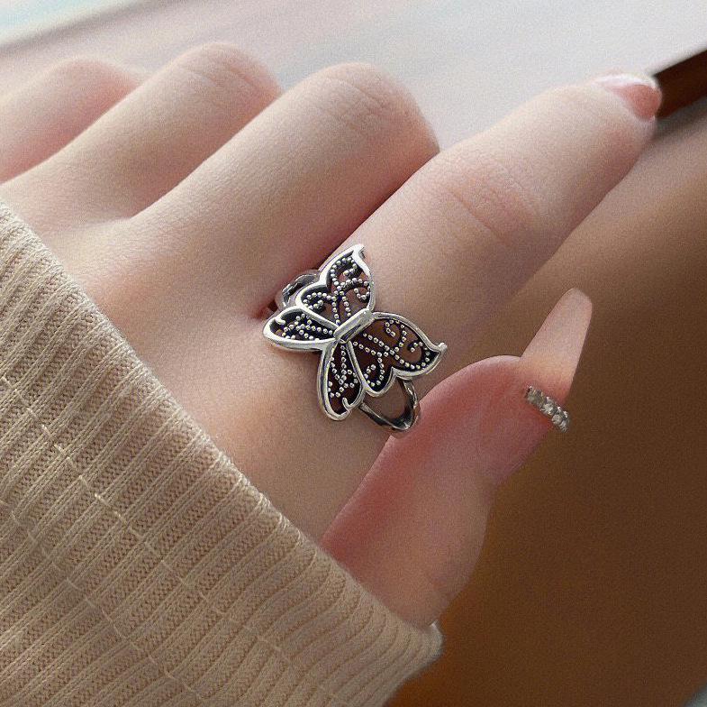 Bella Box Полая бабочка Корейская версия Персонализированное ретро Открытое кольцо на указательный палец для женщин 【 Opening Adjustable 】 серебряный