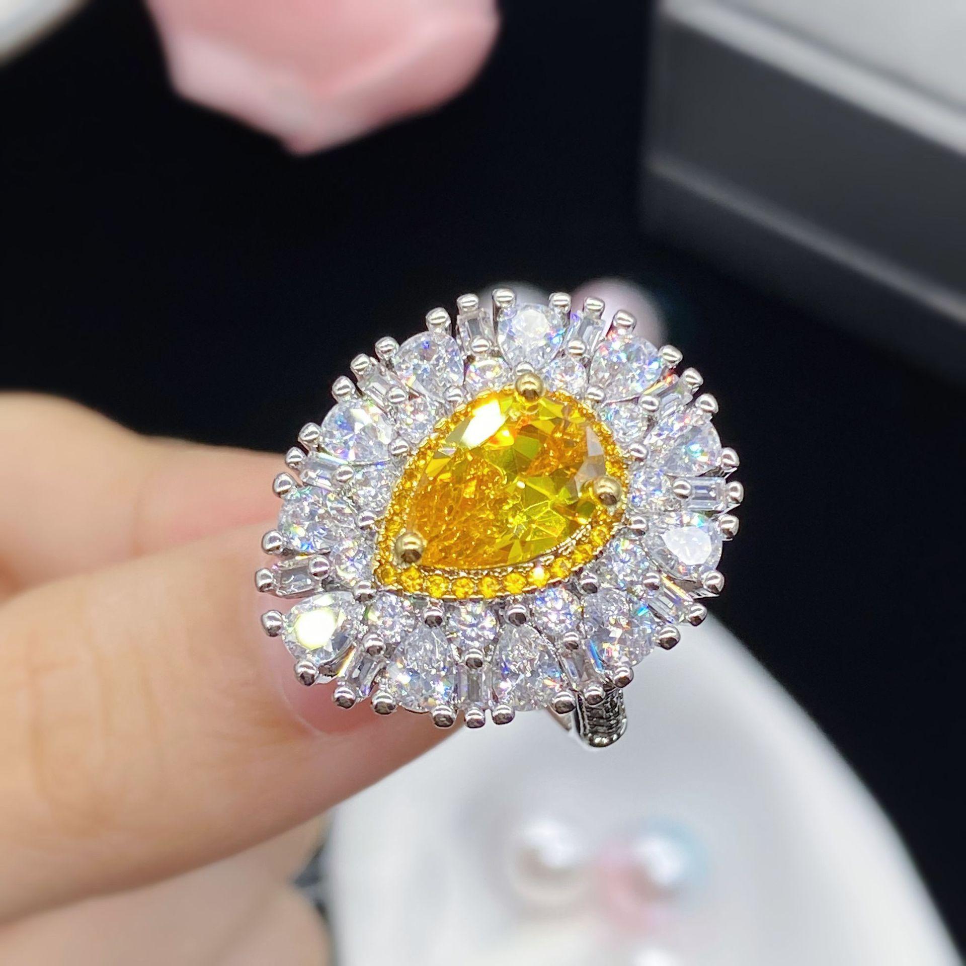 Bella Box, новые темпераментные желтые грушевидные великолепные кольца для женщин, циркониевые кольца для помолвки, изысканные великолепные ювелирные изделия, подарок Adjustable Opening жёлтый