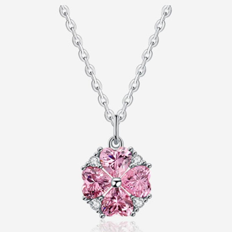 Bella Box Sweet Fashion Розовое сердце в форме вишни Love Clover Серебряная подвеска Версия Темпераментное ожерелье Изящные ювелирные изделия Новые модные розовый/белый
