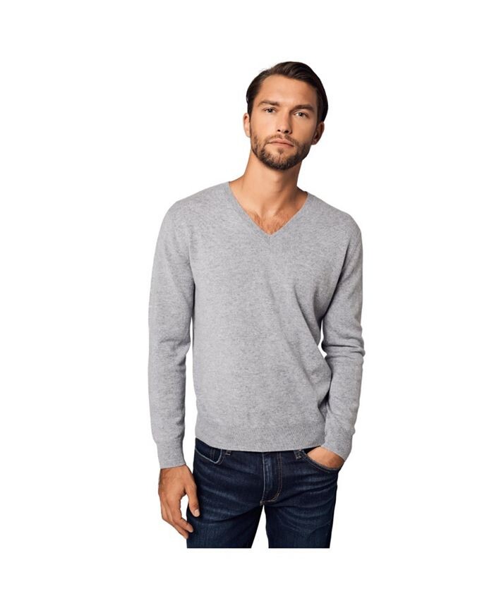 Bellemere Мужской однотонный свитер из шерсти мериноса с v-образным вырезом Bellemere New York, серый