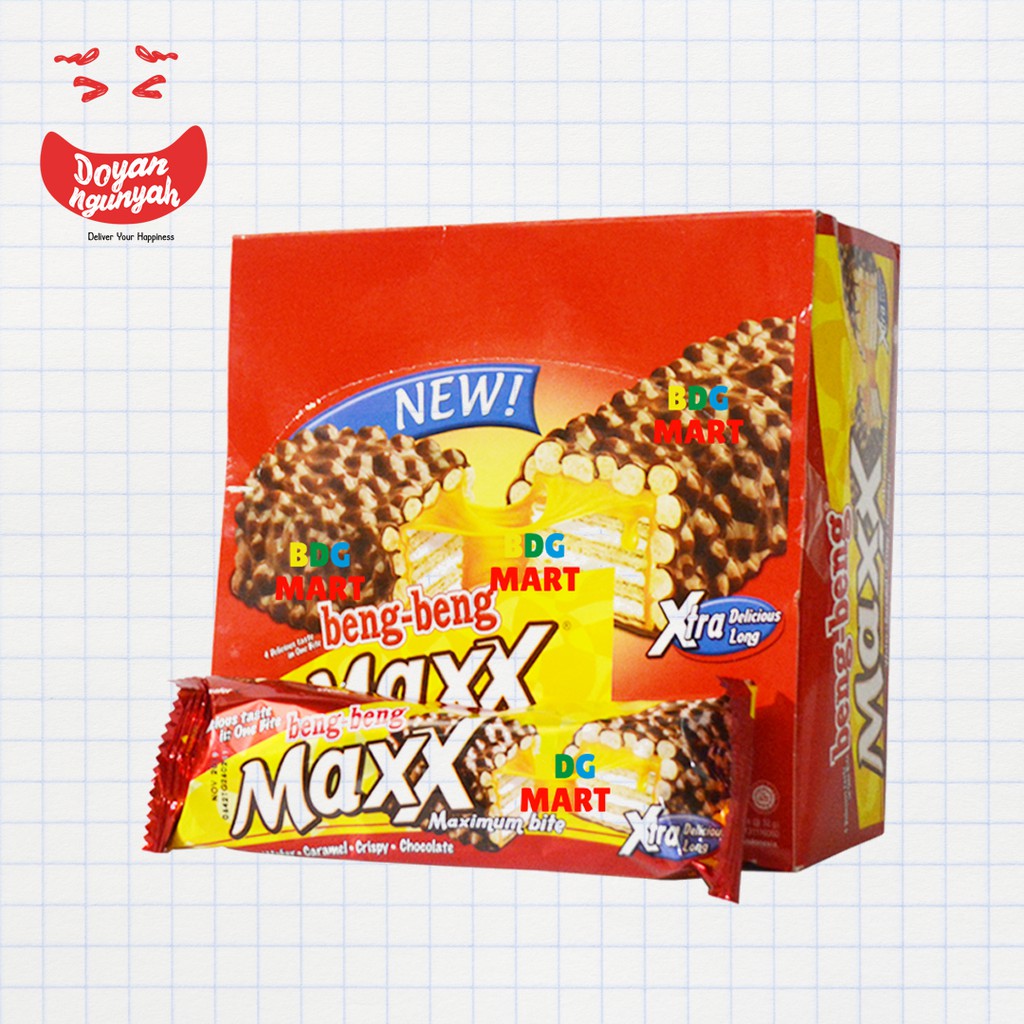 Beng-beng Maxx diproduksi PT. Mayora Indah Tbk - Tangerang, berupa coklat wafer dengan crispy crisp terbalut coklat susu yg enak. Terlapis cream yg lezat dan lembut, cemilan ini tidak bisa ditolak oleh segala usia. Ber BPOM, Halal MUI dan jaminan mutu dari Mayora, cemilan coklat wafer ini sangat mengakar di Indonesia. Beng Beng MAXX dikemas dalam satu kotak berisi 12 bks dgn netto @32gr. Bagi siapa saja yg menginginkan Xtra panjang, Xtra besar, dan Xtra nikmat dari sebuah Beng Beng. Fell The MAXX!