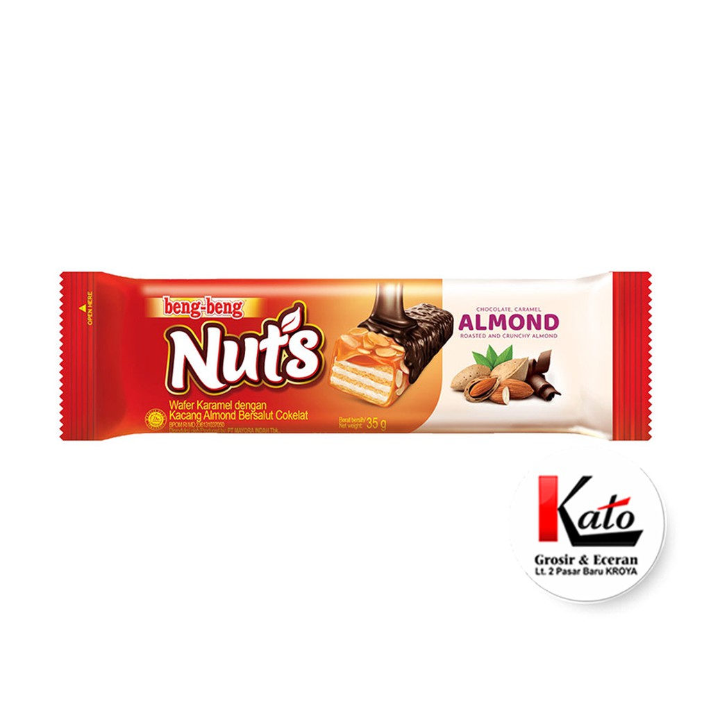 BENG BENG Nuts Almondisi 5pcs @35gram merupakan wafer persembahan Beng Beng dengan coklat dan kacang almond pilihan yang nikmat untuk Anda. Real Chocolate, Roasted Almond Give You Extra Yummy Taste!