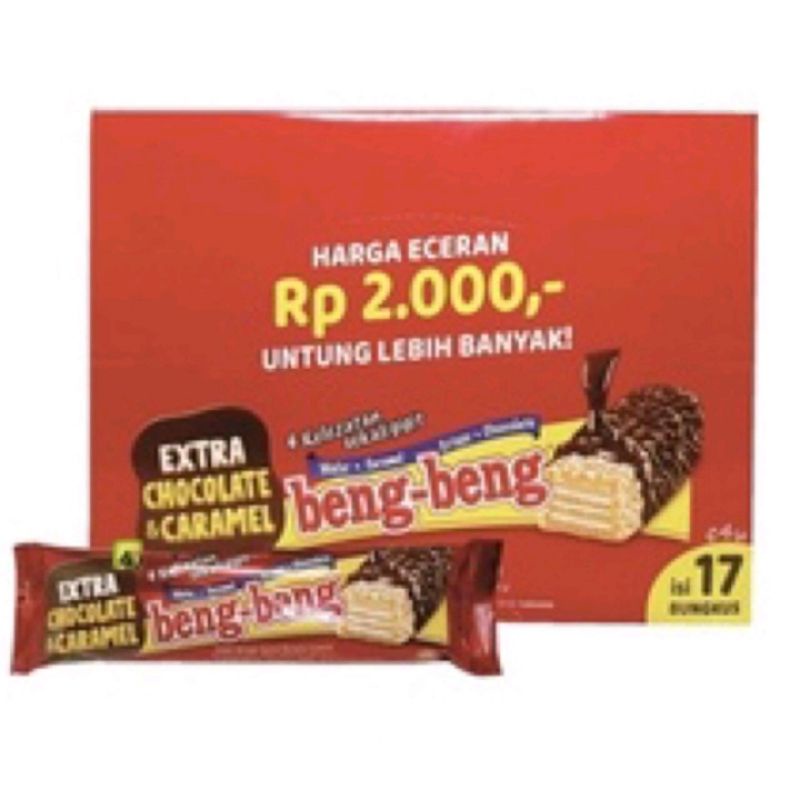 Cream yang lezat, wafer yang lembut dan krispi dilapisi dengan karamel dan milk chocolate. Nikamti chocolate caramel bar favoritmu, Beng Beng the real taste. Komposisi : glukosa, gula, susu bubu, tepung terigu, lemak nabati, lemak kakao, kakao massa, sereal , maltodextrin, dekstrosa, lemak susu, pengemulsi (lesitin kedelai), garam, bahan pengembang (amonium bikarbonat, natrium bikarbonat), perisa cokelat, vanili.