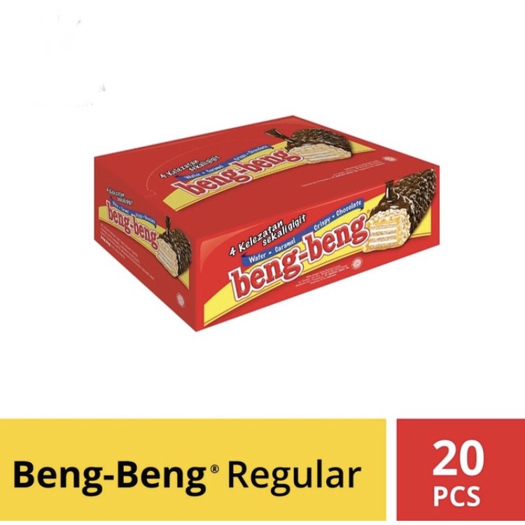 BENG BENG Regular merupakan wafer persembahan Beng Beng dengan coklat pilihan yang nikmat untuk Anda. Wafer ini terbuat dari bahan pilihan yang nikmat. Selain itu, wafer persembahan Superstar ini memiliki kemasan yang praktis dan mudah untuk dikonsumsi. Ideal dijadikan cemilan sehat saat santai Anda bersama keluarga. Kemasan 22 Gr.