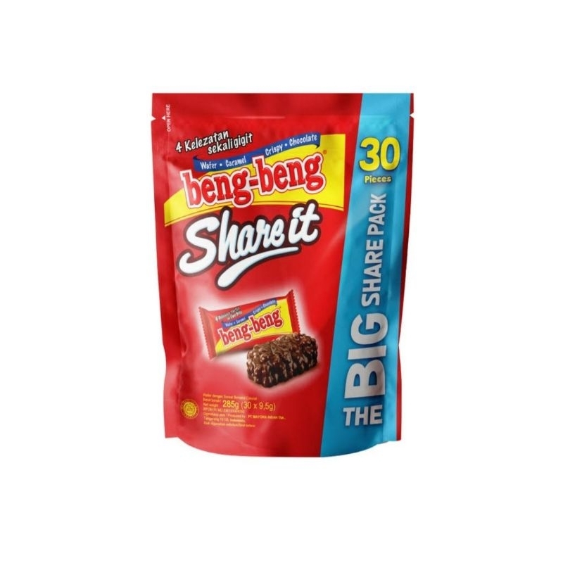 Beng Beng Share It adalah camilan wafer dengan lapisan legit karamel dan lelehan cokelat yag lezat. Bedanya dengan varian Beng Beng lain adalah Beng Beng Share It berukuran lebih kecil karena didesain agar bisa dimakan “sekali hap”.