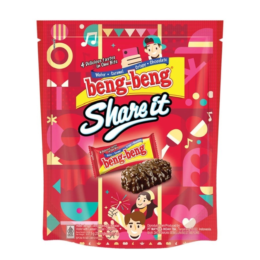 Nikmati paduan cokelat, wafer, karamel, dan rice crispy dalam satu gigitan beng-beng Share It. Menikmati legitnya beng-beng Cokelat ketika digigit membuat saat santai Anda dan keluarga menjadi momen yang mengasikkan. Tersedia dalam kemasan isi 25 pcs yang cocok dinikmati bersama di suasana berkumpul bersama.