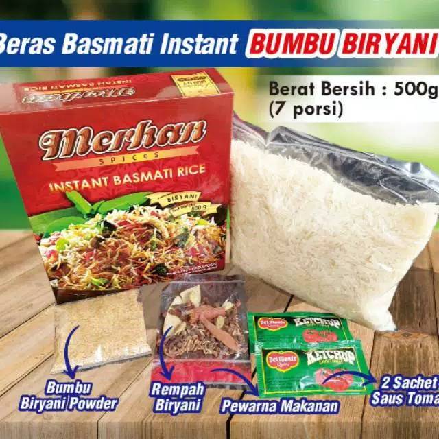 Beras Basmati Instan Bumbu Biryani Merhan Basmati Rice Dalam paket sudah termasuk beras dan bumbu-bumbu Kemasan 500gr