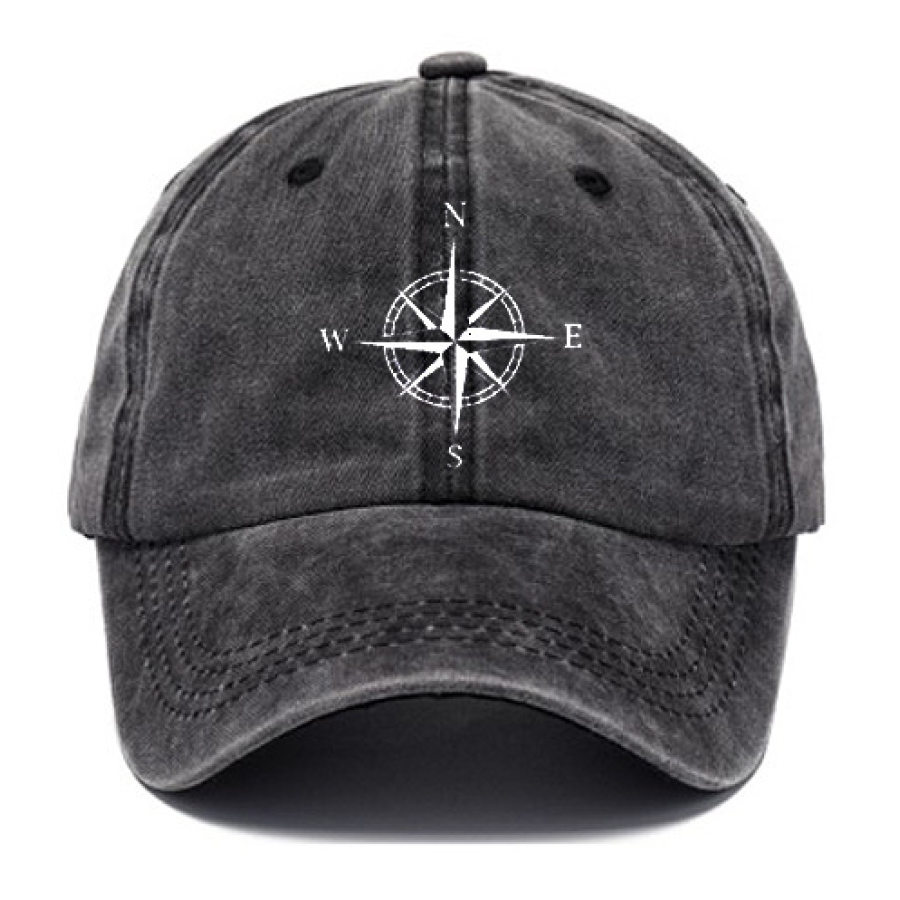 cappelli,berretto con visiera da uomo in cotone lavato con stampa compass