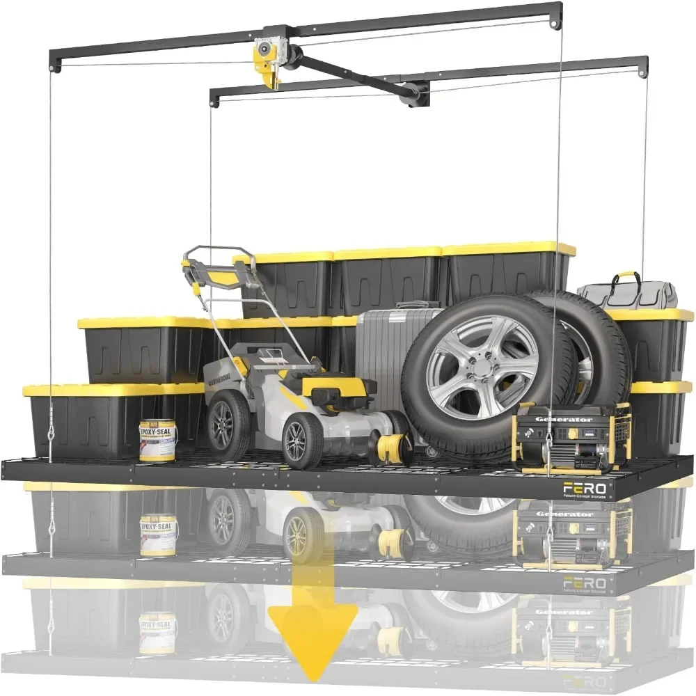 BestsellerOverhead Garage Storage Solutions: 4x8 FT Ceiling Rack with Secure Lock and Heavy-Duty Lift System