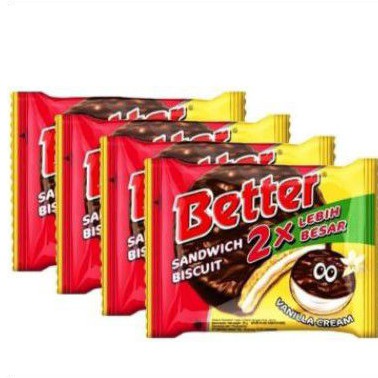 Nikmati lezatnya biskuit sandwich renyah dengan balutan coklat yang tebal serta sensasi krim vanila yang lembut. Pasti bikin harimu jadi Better