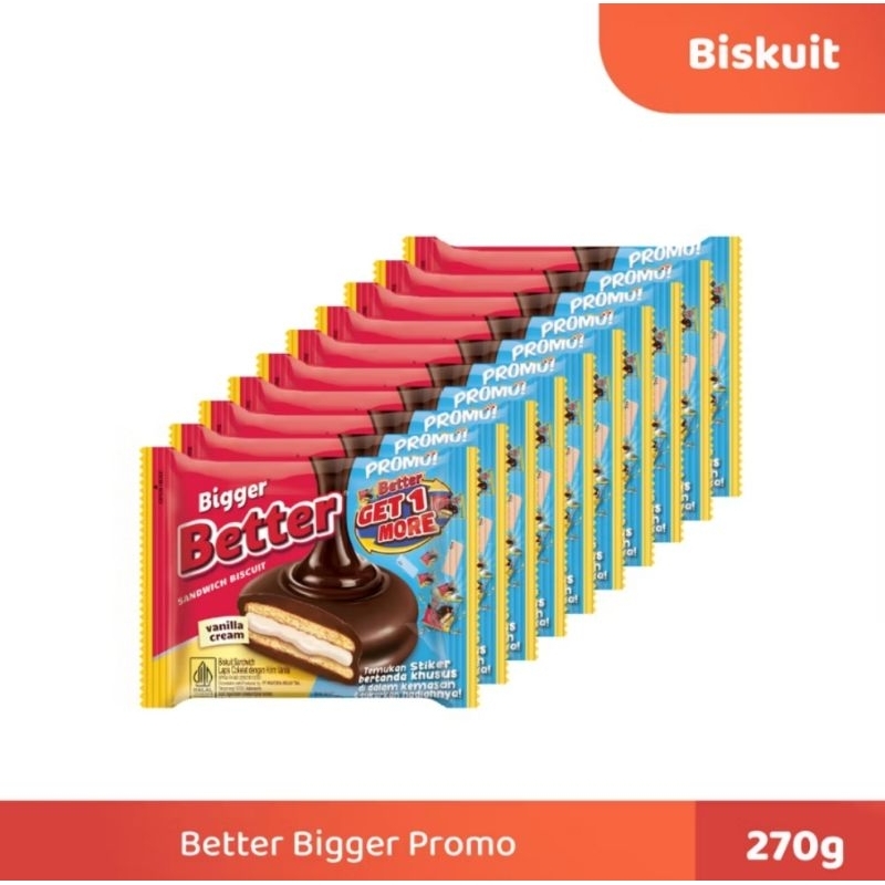 Better Bigger Renceng adalah biskuit sandwich berlapis cokelat dan krim vanila yang lembut dan renyah. Mengandung vitamin B1, B2, B6,B12, dan E serta kalsium.Bertter cocok dinikmati dengan kopi atau teh, dan bisa menjadi bekal untuk dibawa kemana saja.