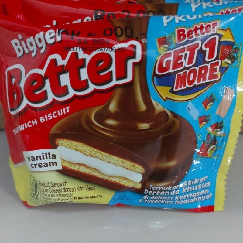 Better biskuit sandwich yang berlapis coklat dengan perpaduan cream vanilla dan jelas khas sekali coklat nya