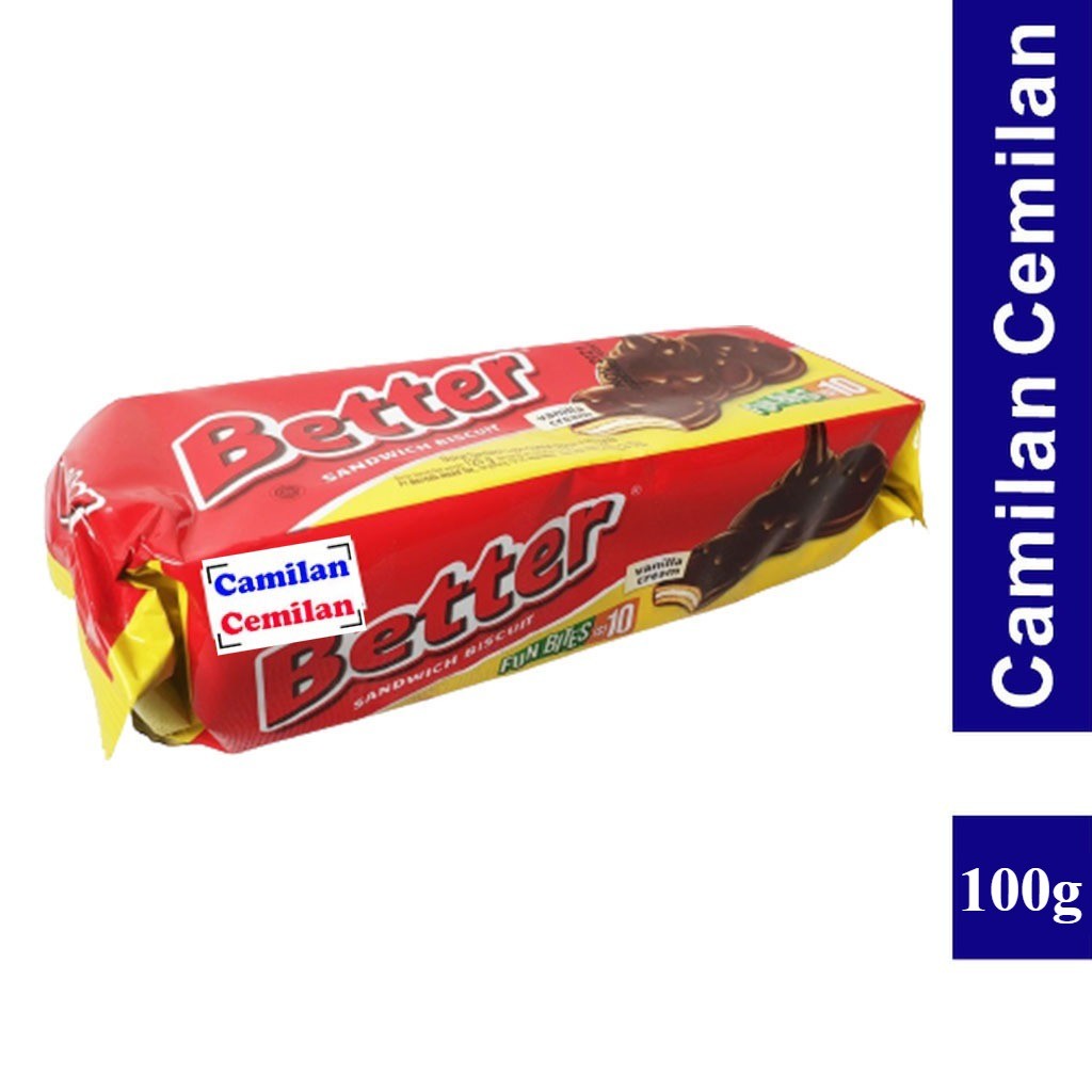 Better Fun Bites Big Pack 120gr merupakan biskuit dengan vanila krim. Sandwich biskuit dengan krim vanilla lembut yang dilapisi dengan cokelat tebal yang lezat. Memberi Anda rasa yang sempurna untuk setiap momen.