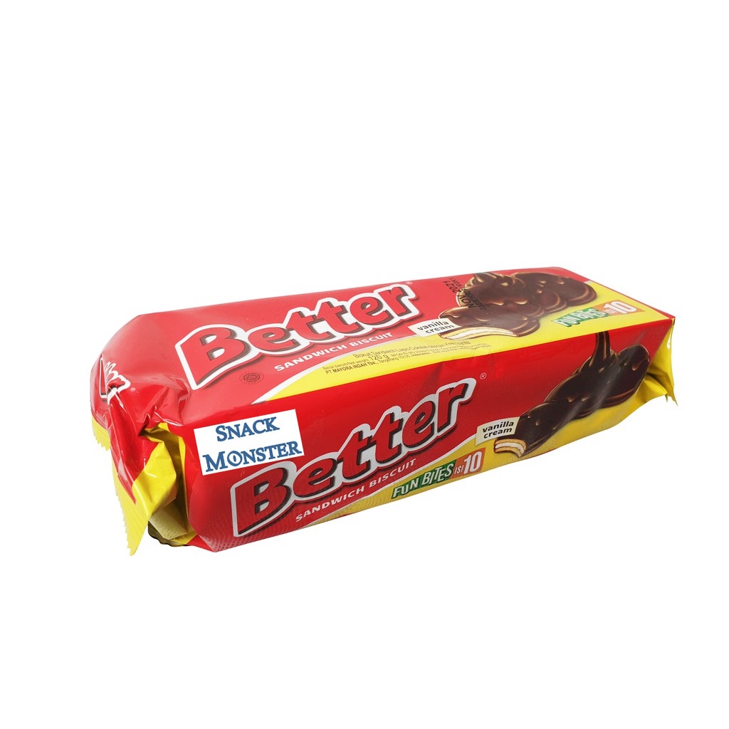 Biskuit sandwich better ini adalah biskuit yang sangat renyah dan cocok dimakan saat bersantai berkumpul bersama teman maupun kluarga, biskuit ini juga memiliki balutan selai vanilla yang tebal dan bisa dibawa kemana-mana. Bernetto 120 gr.