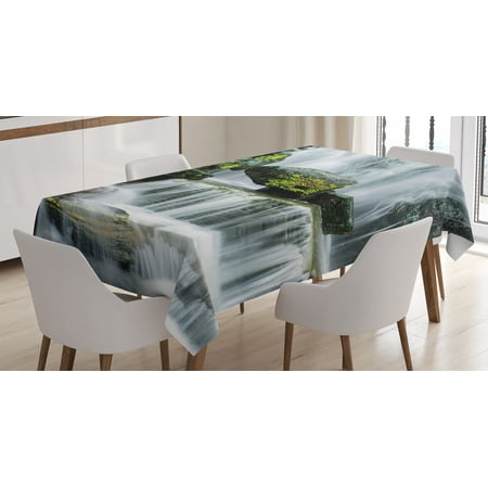Waterfall Decor Tablecloth Majestic Waterfall Blocked with Massive Rocks with Moss on Them Rectangular Table Cover for Dining Room Kitchen 60 X 90 Inches Green Black and White by Ambesonne