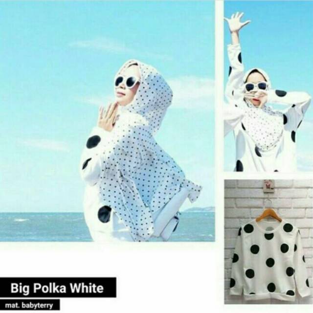 Sweeter Big polka White, Bahan Babyterry, fit to L #bajuwanita #bajuwanitamurah #bajuwanitaterbaru #sweatermurah #sweaterwanita #olshopmurah #olshopklaten #olshopklatenmurah