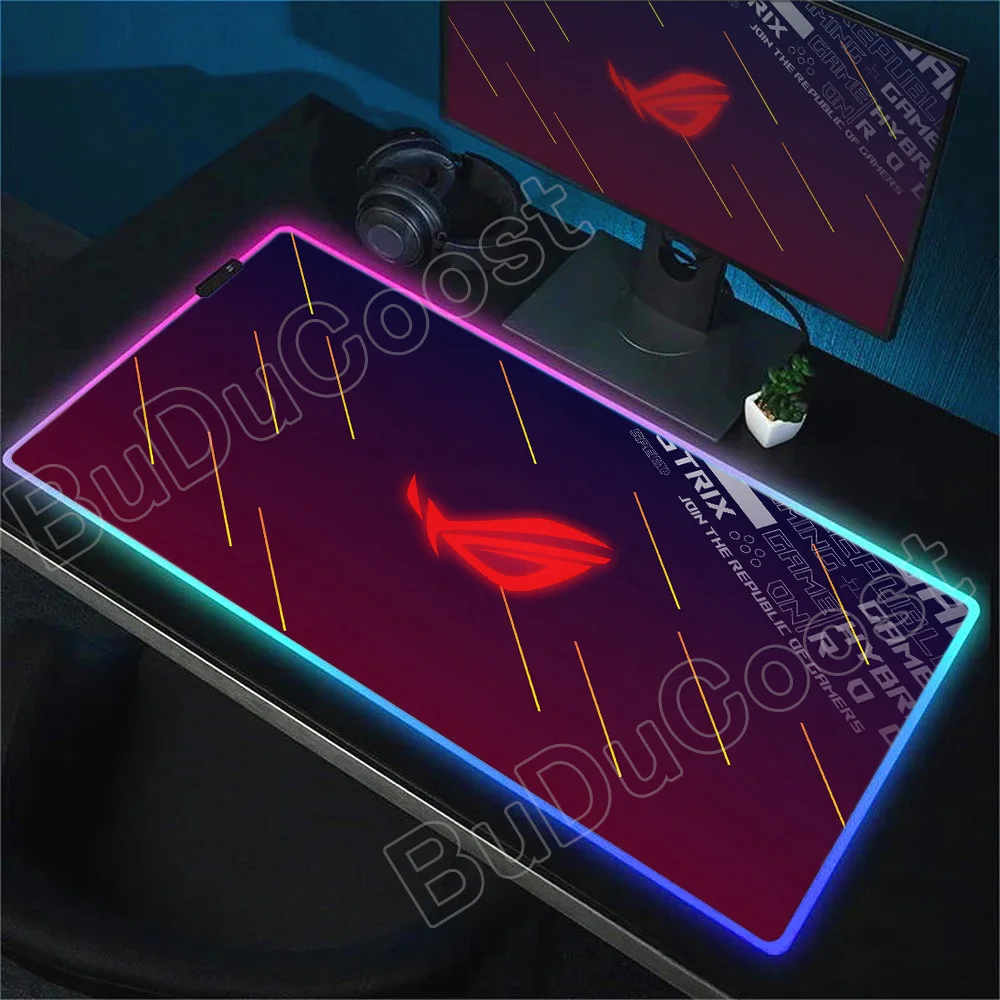 Big RGB Glowing Cool ROG Asus Desk Mat Mouse Pad Gaming LED Mouse Mat 900x400mm Mousemads Table Pads PC Office Keyboard Mats XXL