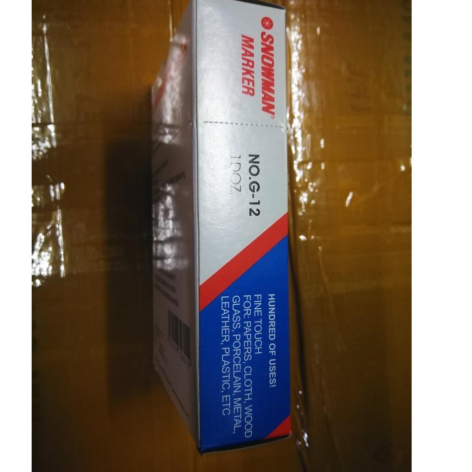 BUDAYAKAN MEMBACA SEBELUM MELAKUKAN PEMBELIAN [Lusin] Spidol Snowman Permanen G12 Spidol Permanen G-12 *Merk: Snowman *Tidak Bisa Dihapus Ready Stock Warna: - Hitam - Biru - Merah - Hijau Selamat Berbelanja Brothers & Sisters! - Fast respon jam kerja Senin - Jumat pukul 9.00 - 17.00, Sabtu pukul 9.00 - 14.00, Minggu atau hari libur Off - Mohon mencantumkan warna/gambar/varian pilihan dan cadangannya (jika ada) di kolom pemesanan ya. Jika tidak mencantumkan pilihan, maka akan kami kirimkan sesuai stok yang ready!!! - Pengiriman pada H+1 (malamnya). - Jika barang yang di pesan kosong dan tidak ada respon selama 1x24 jam maka akan di kirim secara random. - Periksa kembali NOMOR HP (TELP) & ALAMAT LENGKAP. Guna mempercepat dan memperlancar pengiriman. - BARANG YANG SUDAH DI BELI TIDAK BISA DI KEMBALIKAN. - Gudang kita ada di DKI Jakarta, Jawa Timur, Jawa Tengah, Jawa Barat dan lainnya. Jadi pengiriman tidak selalu sesuai alamat toko ini yaaa.. >>>> MEMBELI = SETUJU