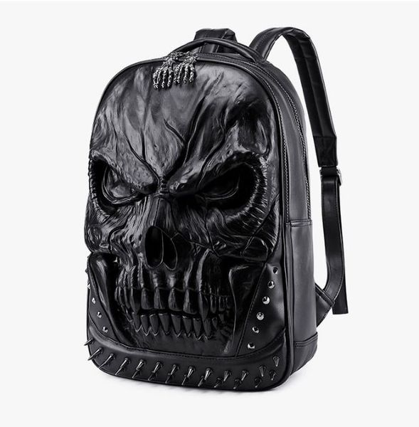 new 3d embossed skull backpack bags for men unique originality man bag rivet personality cool rock lapschoolbag for teenagers handbags