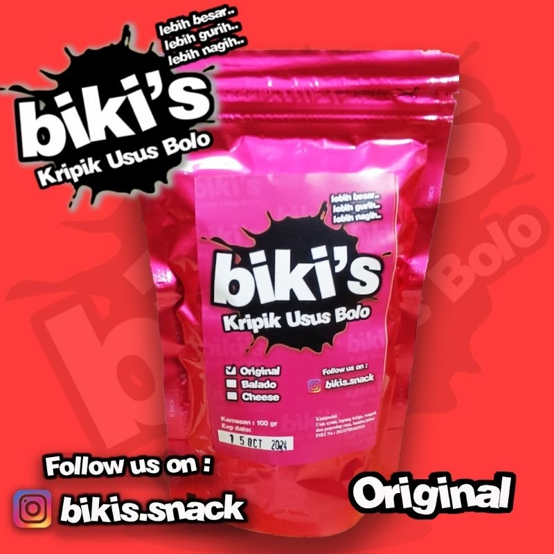 Biki's Kripik Usus dengan 5 varian rasa yg ada : Original, Balado, Cheese, Chilli dan Jagung bakar.
