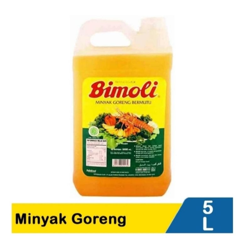 Minyak goreng dari Bimoli ini hadir untuk membantu ibu menyiapkan hidangan istimewa bagi keluarga tercinta. Terbuat dari biji kelapa sawit pilihan yang diproses dengan tahap Pemurnian Multi Proses (PMP) yang memiliki enam tahapan pemrosesan, mampu mempertahankan zat-zat yang bermanfaat bagi kesehatan sehingga menghasilkan minyak goreng berkualitas tinggi. Minyak goreng yang diproses secara higienis ini dikemas di bawah pengawasan ketat sesuai standar international. Mengandung Omega 9 yang memiliki asam lemak tak jenuh tunggal atau Mono Unsaturated Fatty Acid (MUFA) yang menurut para ahli internasional berkhasiat menurunkan kolesterol LDL dan menaikkan kolesterol HDL. Juga kaya beta-karoten (pro-vitamin A) dan vitamin E, serta diformulasi bebas kolesterol sehingga aman untuk penderita kolesterol dan jantung. Tersedia dalam kemasan jerigan 5 liter untuk memenuhi kebutuhan memasak ibu dirumah.