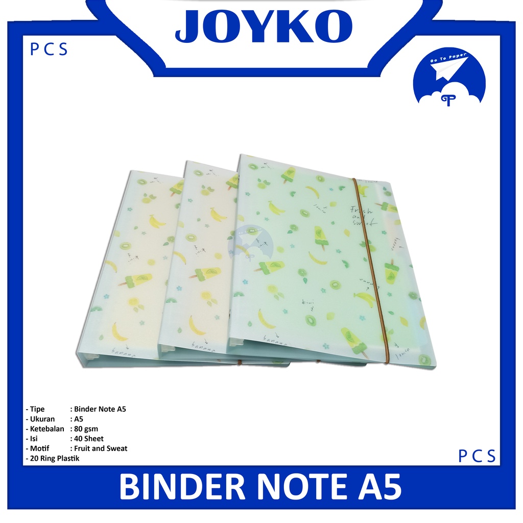 Binder Note Notebook Ring Plastic Joyko A5 - Motif Fruit n Sweet Pcs