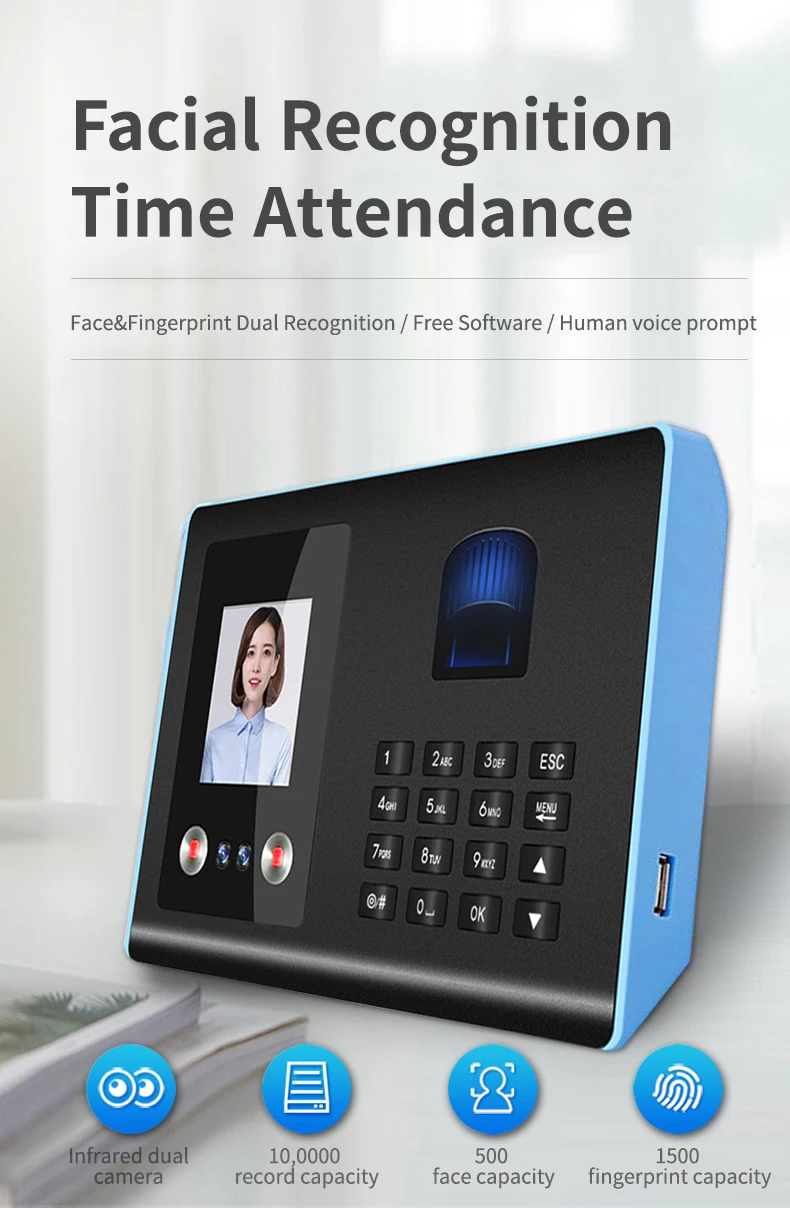Biometric Face & Fingerprint Recognition Time Attendance Device for Enhanced Office Efficiency