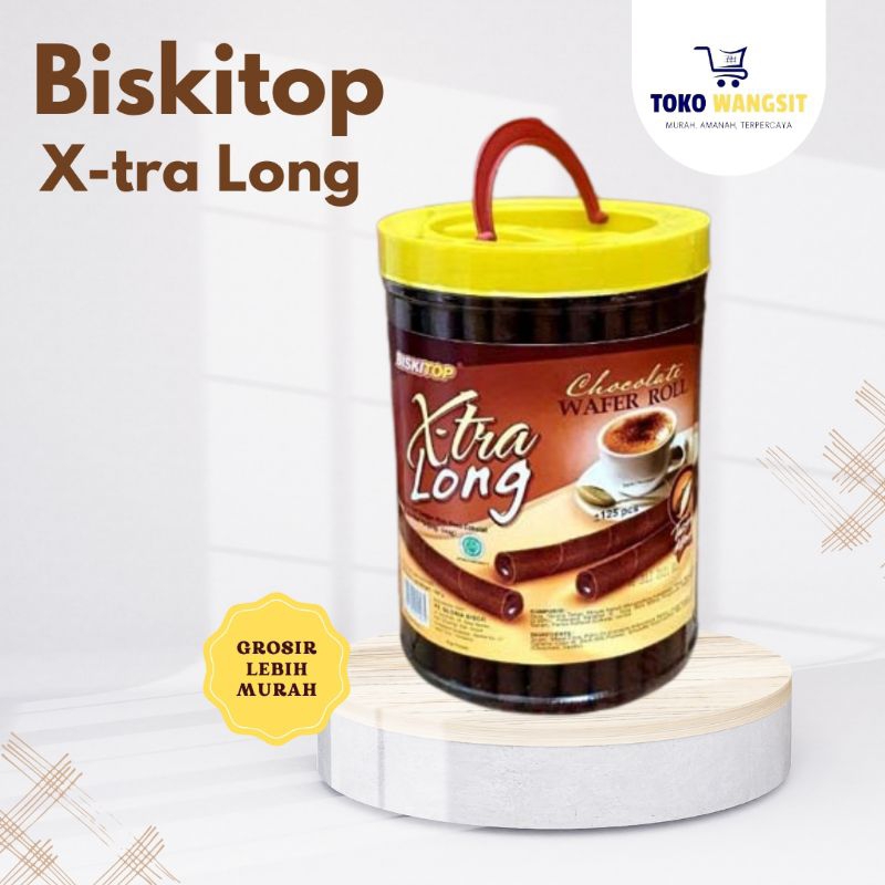 Biskitop X-tra Long Wafer Roll Chocolate dengan rasa cokelat yang lezat