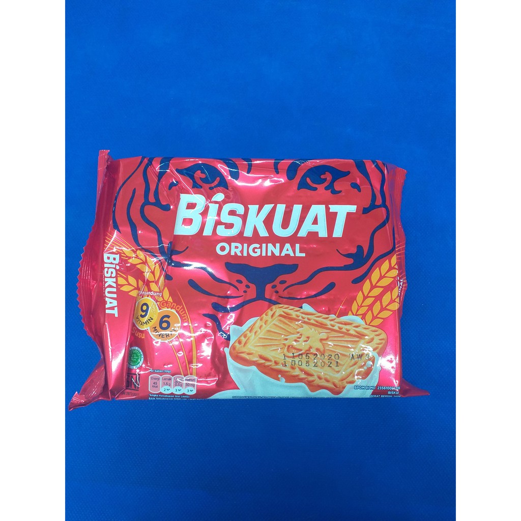 Biskuat rasa original dengan berat 140gr dikemas dalam plastik berwarna merah