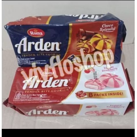 Biskuit Roma Arden kemasan pack isi 8 pcs, varian coklat & stoberi.