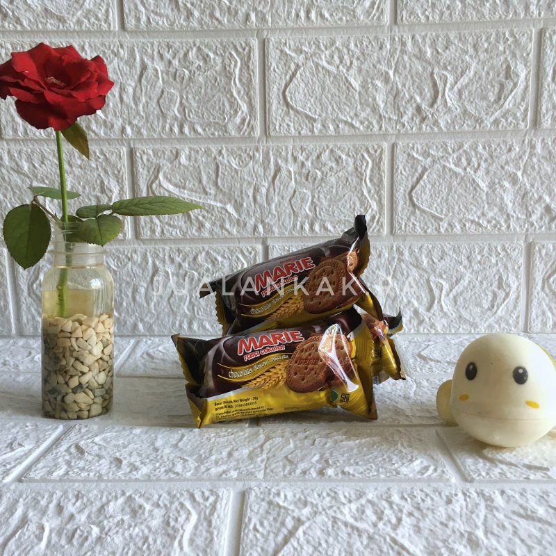 Biskuit Marie dengan rasa coklat yang enak kemasan 28 gram, produk UBM