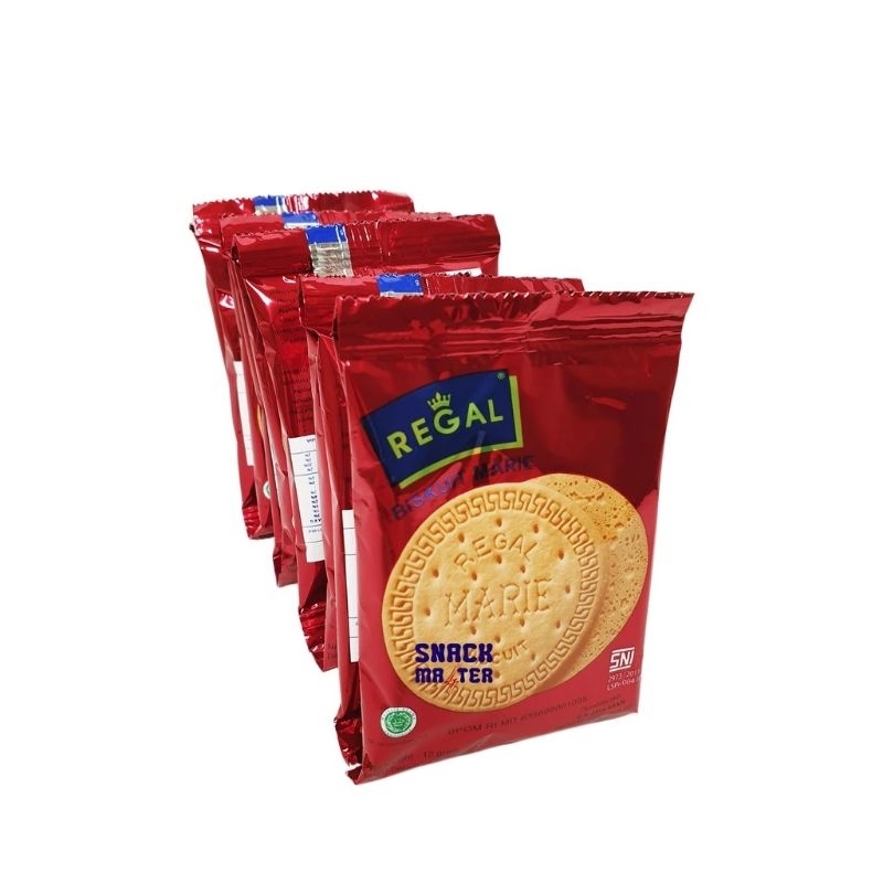 Sejak tahun 1952, Regal telah menjadi brand biskuit Marie nomor 1 di Indonesia. generasi turun temurun telah menikmati kerenyahan dan kelezatan biskuit Marie Regal. Biskuit ini sangat cocok untuk dicelup dalam susu, teh atau kopi. Dibuat dari bahan-bahan pilihan terbaik, dan diproses sesuai standar ISO biskuit sehat dan bergizi ini adalah snack yang ideal untuk seluruh keluarga.