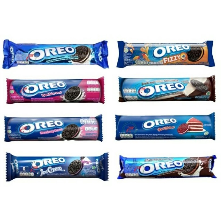 Original(vanilla), Strowberi Cream, Fizzy, Dark and White Choco, Ice Cream Blue Berry, Peanut Butter and Choco, Double Stuf dan Chocolate Cream