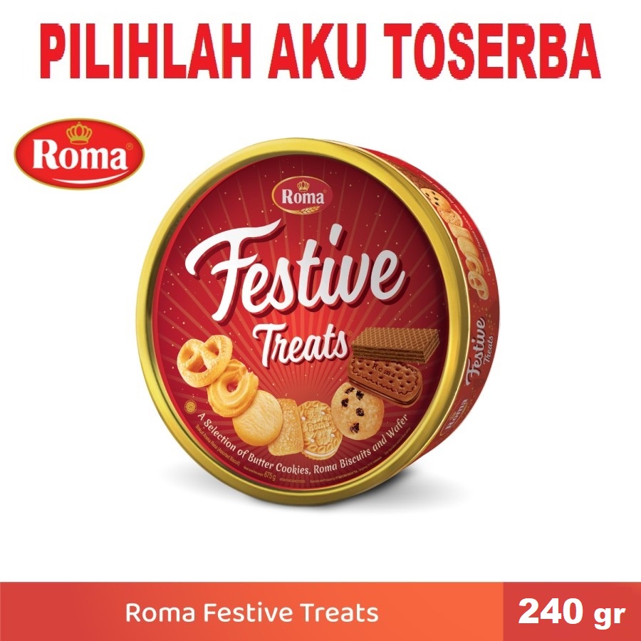 Biskuit Roma FESTIVE Treats Kaleng 240 Gram - ( HARGA 1 KALENG )