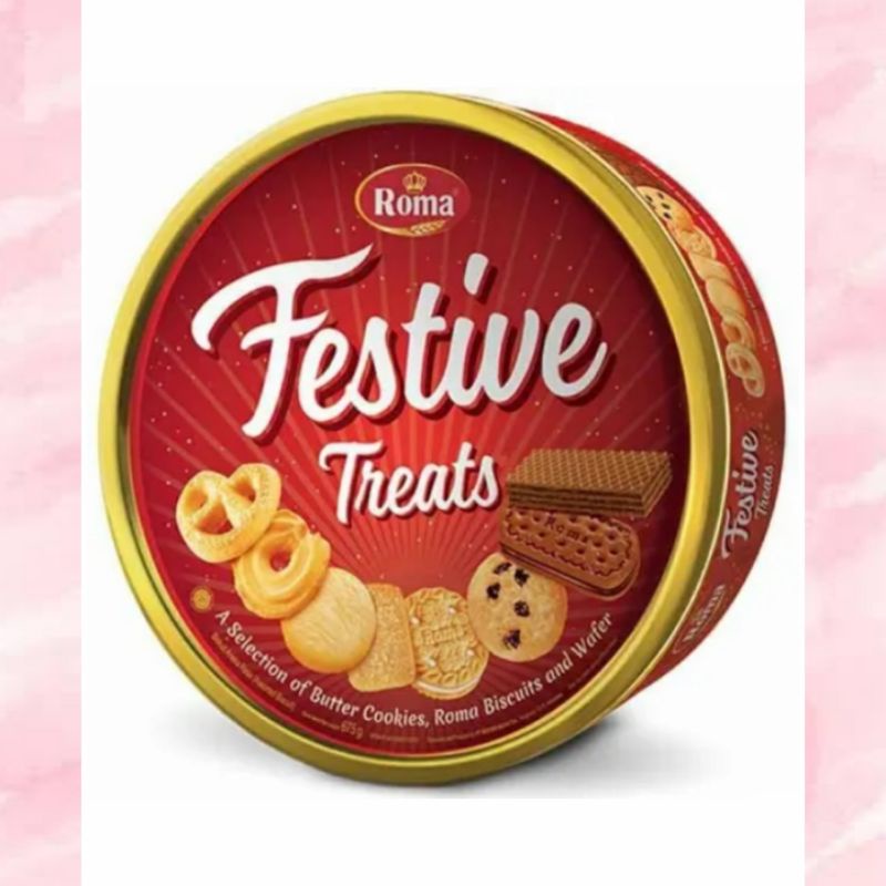 ROMA Festive Treats Biscuits and Cookies Limited adalah set makanan kaleng dari PT. Mayora Indah Tbk berupa paket esklusif berisi biskuit² premium dari brand ROMA, dan butter cookies produksi Mayora. Terdiri dari berbagai brand mulai dari Arden, Slai O Lai, Roma Kelapa Cream, hingga varian² butter cookies yg enak dari Mayora. Dengan isi yg padat (tanpa tipu² ganjalan plastik yg ga penting), Festive Treats benar² berisi set biskuit dan cookies yg isinya melimpah. Sangat berkelas dgn seleksi kue-kue premium yg sangat baik. Dikemas dengan kaleng bulat besar dan kotak berdesign esklusif. Netto 675 gr, beratribut lengkap BPOM RI dan Halal MUI. Dengan kuantiti release terbatas, layak buat gift set kolega, keluarga, atau sekedar dinikmati bersama dirumah.