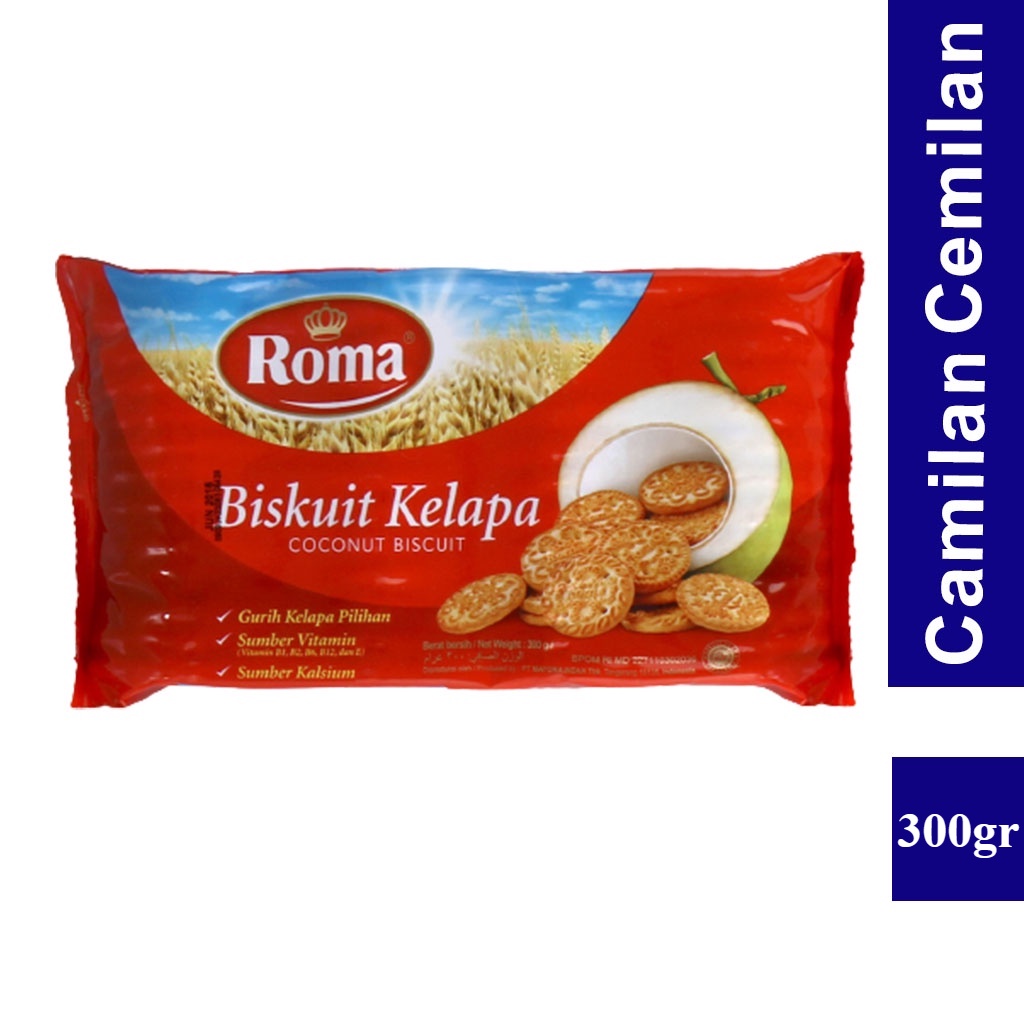 Biskuit menarik yang dicintai oleh seluruh keluargaRoma® Kelapa (Paket 300g)Jadikan teatime sebuah kesempatan untuk menantikan paket biskuit Roma® Kelapa. Setiap biskuit emasnya, dipanggang dengan oven dan berisi kelapa asli untuk camilan lezat dan beraroma harum yang bisa kamu nikmati di mana pun.