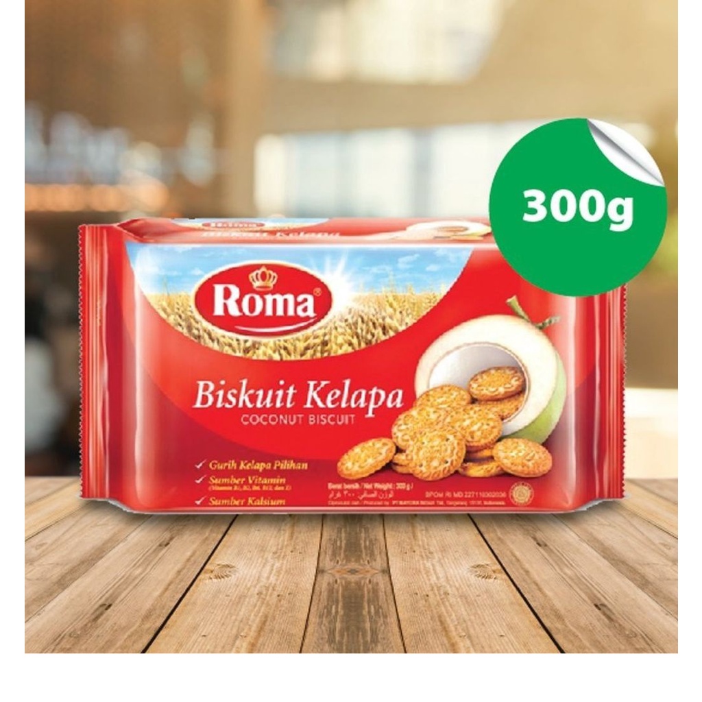 Roma Kelapa merupakan biskuit yang dibuat dari kelapa segar pilihan. Biskuit ini dilengkapi dengan sumber vitamin dan kalsium yang dapat menutrisi tubuh Anda. Nikmati biskuit bersama teh di sore hari dapat mencerahkan hari Anda.