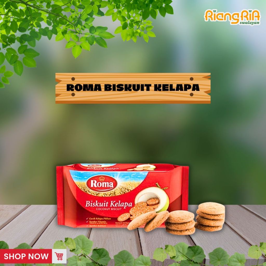 Roma Biskuit Kelapa 300 g adalah biskuit kelapa dengan rasa renyah dan gurih yang dihasilkan dari kelapa pilihan. Rasa kelapa asli dari Roma biskuit ini telah menjadi kesukaan banyak orang, baik di Indonesia atau pun di berbagai negara lain. Diperkaya dengan vitamin B1, B2, B6, B12, dan E, serta kalsium, biskuit Roma Kelapa ini akan menjadi teman biskuit kelapa yang sehat untuk Anda. Jalani hari-hari bersama kerenyahan biskuit Roma Kelapa, teman yang baik untuk Anda.