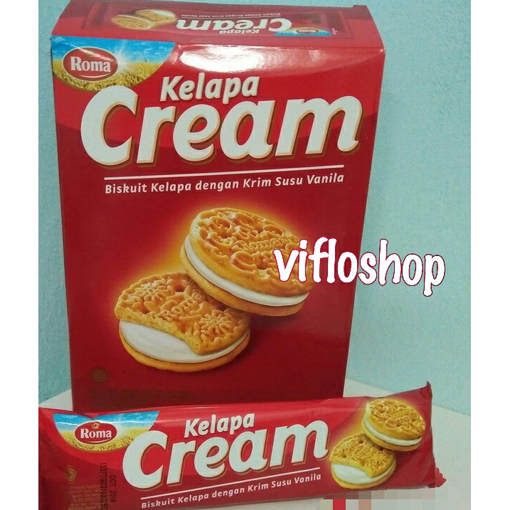 Biskuit Roma Kelapa Cream kemasan box isi 12 sachet @ 40 gram. Netto per box sekitar 480 gram.