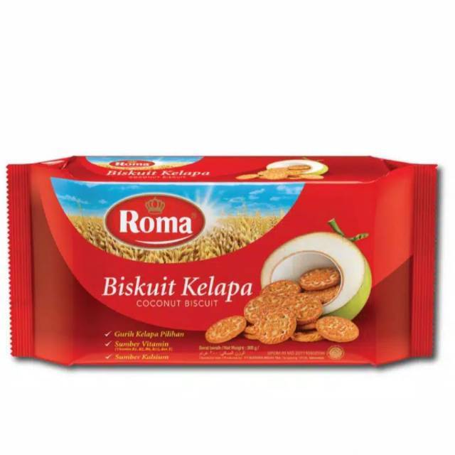Roma Kelapa merupakan biskuit yang dibuat dari kelapa segar pilihan, Biskuit ini di lengkapi dengan sumber vitamin dan kalsium yang dapat menutrisi tubuh anda, rasanya enak, renyah, cocok untuk menjadi kelengkapan dan cemilan keluarga dimanapun.