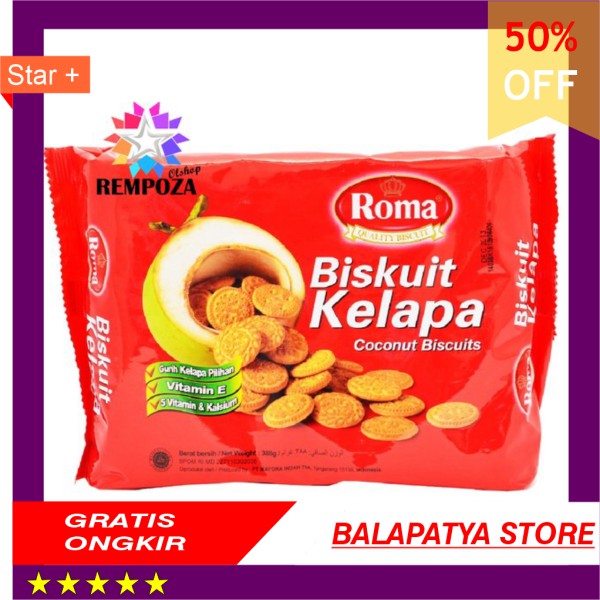 Roma biskuit kelapa dengan rasa yang gurih dan nikmat. kemasan 300 gram.