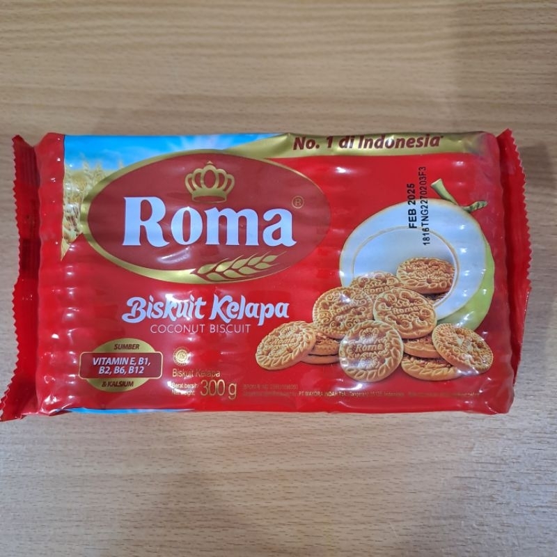 Roma Biskuit Kelapa adalah biskuit kelapa dengan rasa renyah dan gurih yang dihasilkan dari kelapa pilihan. Rasa kelapa asli dari Roma biskuit ini telah menjadi kesukaan banyak orang, baik di Indonesia atau pun di berbagai negara lain. Diperkaya dengan vitamin B1, B2, B6, B12, dan E, serta kalsium, biskuit Roma Kelapa ini akan menjadi teman biskuit kelapa yang sehat untuk Anda. Jalani hari-hari bersama kerenyahan biskuit Roma Kelapa, teman yang baik untuk Anda.