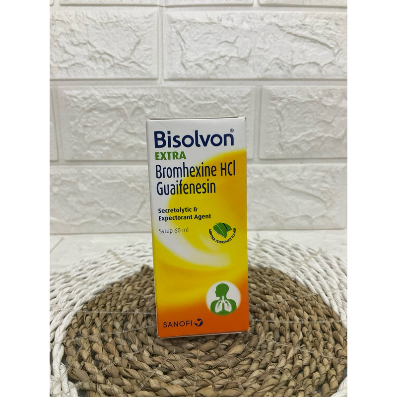 # Bisolvon Extra Syrup Digunakan untuk sekretolitik (mukolitik) dan ekspektoran untuk meredakan batuk berdahak dan mempermudah pengeluaran dahak.