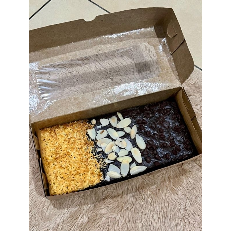 Brownies Chewy yang rasa nya nyoklat banget, dengan pilihan topping keju, coklat dan Almond