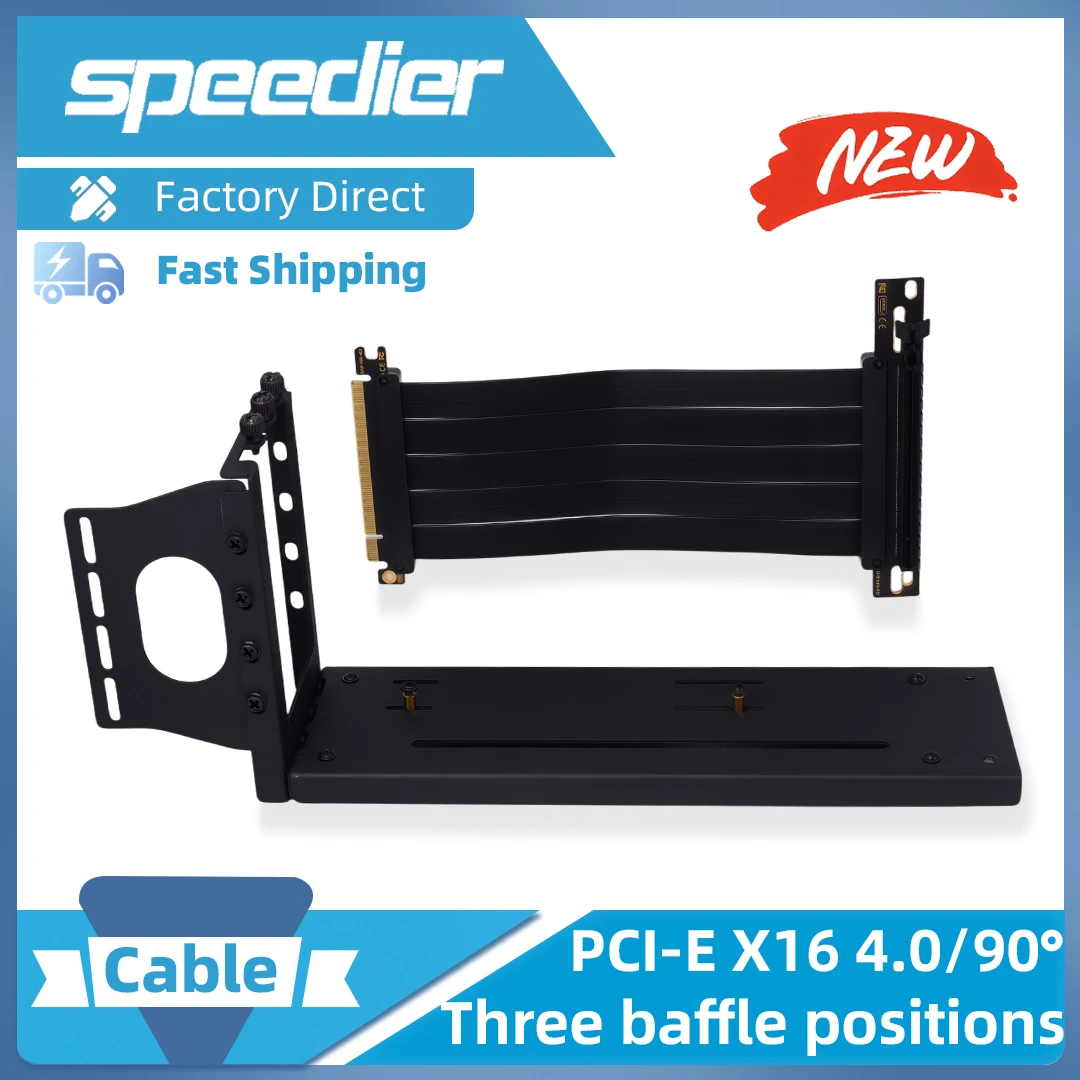 Black PCIE 4.0 X16 Riser Cable 90 Degree Graphics Card Vertical Mounting PCI-E Extension Flexible Extender Bracket Holder 20cm
