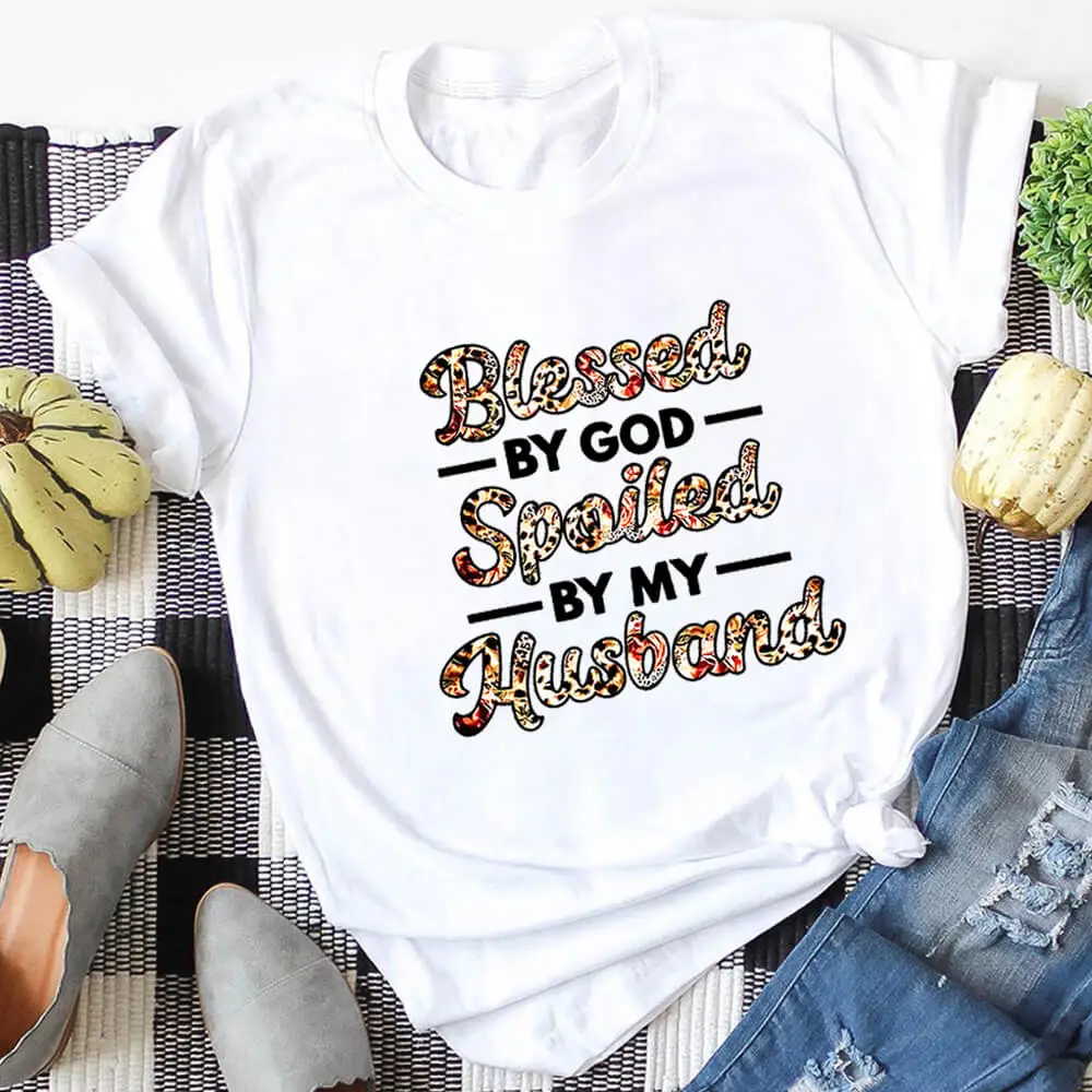 Blessed Богом избалованы мой муж 100% хлопчатобумажная женская футболка Кристиан рубашка Blessed для женщин забавные Повседневная летняя одежда с коротким рукавом, Топ